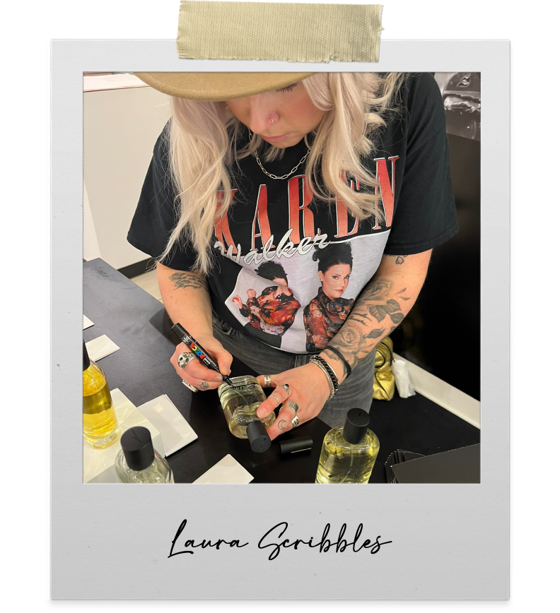 AKRO collaborates with Laura a talented graphiste artist. She will be at Finchley Bond Street from the 18 of May till the end of the month and will customize a bottle of your favorite addiction just for you! A unique piece of art to keep and admire with your name on it.