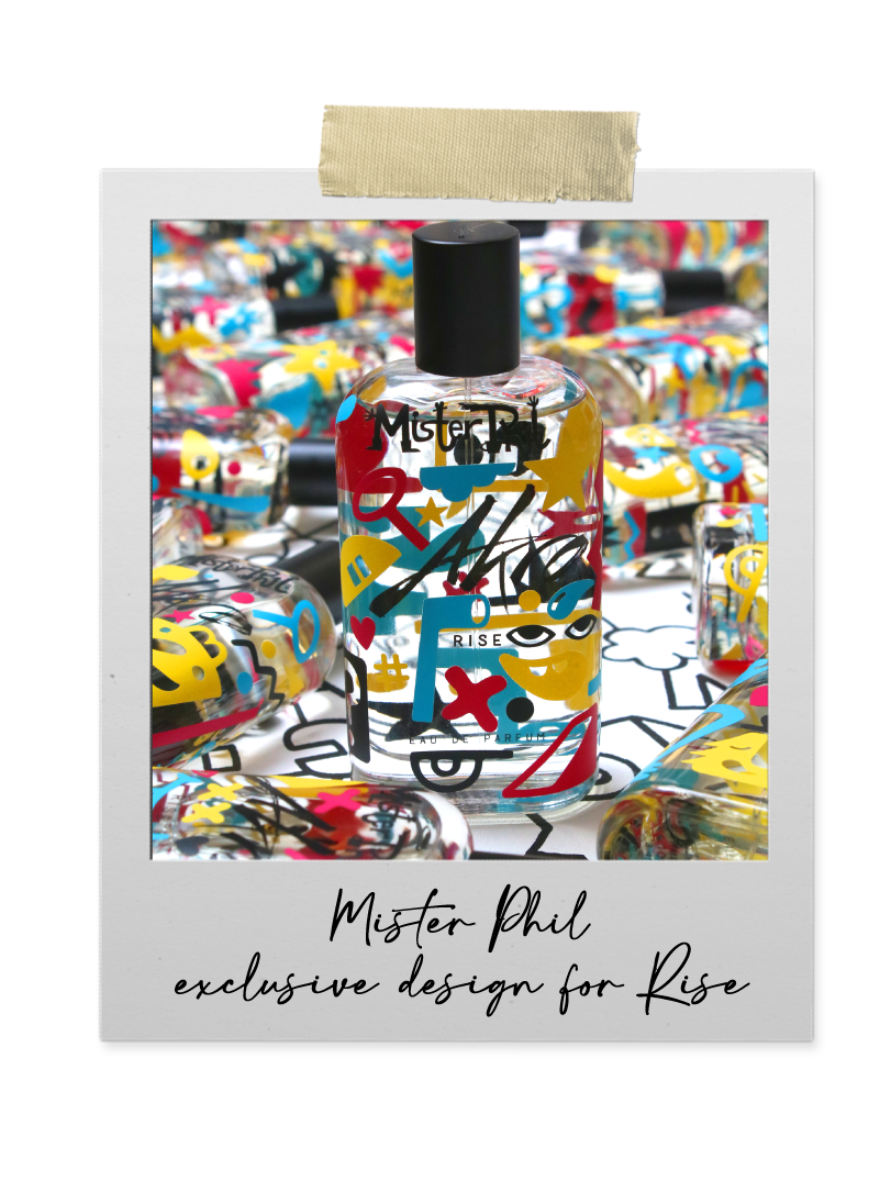 RISE celebrates an endless summer, our addiction to one of the happiest times of the year, Mister Phil’s playful and colourful aesthetic and contemporary style create the perfect joyful backdrop for this up-beat fragrance.